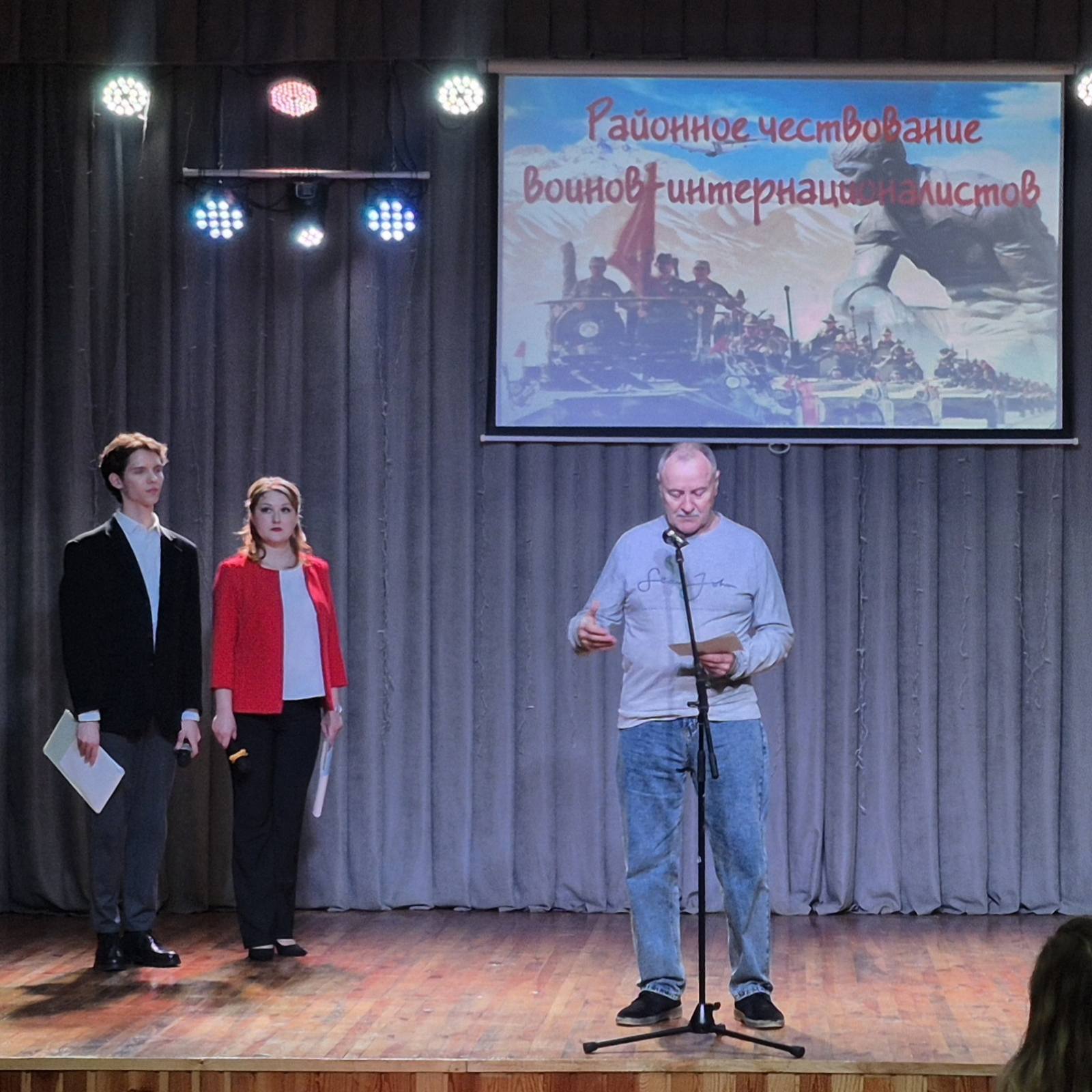 13 февраля прошло торжественное районное мероприятие, посвящённое Дню памяти воинов- интернационалистов. Со словами поздравлений и пожеланий выступили: Доценко О.А.зам.главы администрации Центрального района и участник боевых действий в Афганистане Мацукевич В.С. Творческие номера представили зрителям учащиеся школ и колледжей.