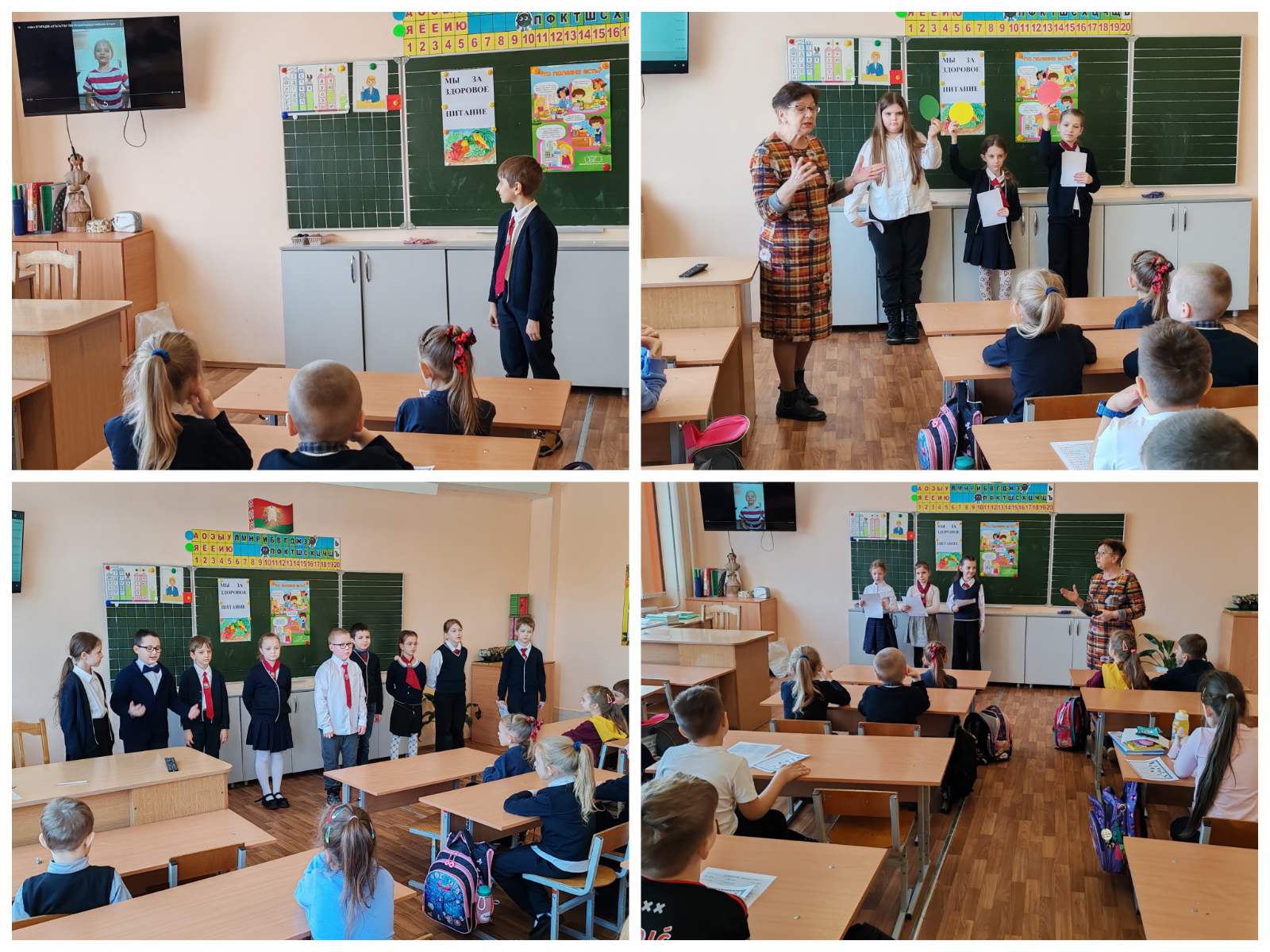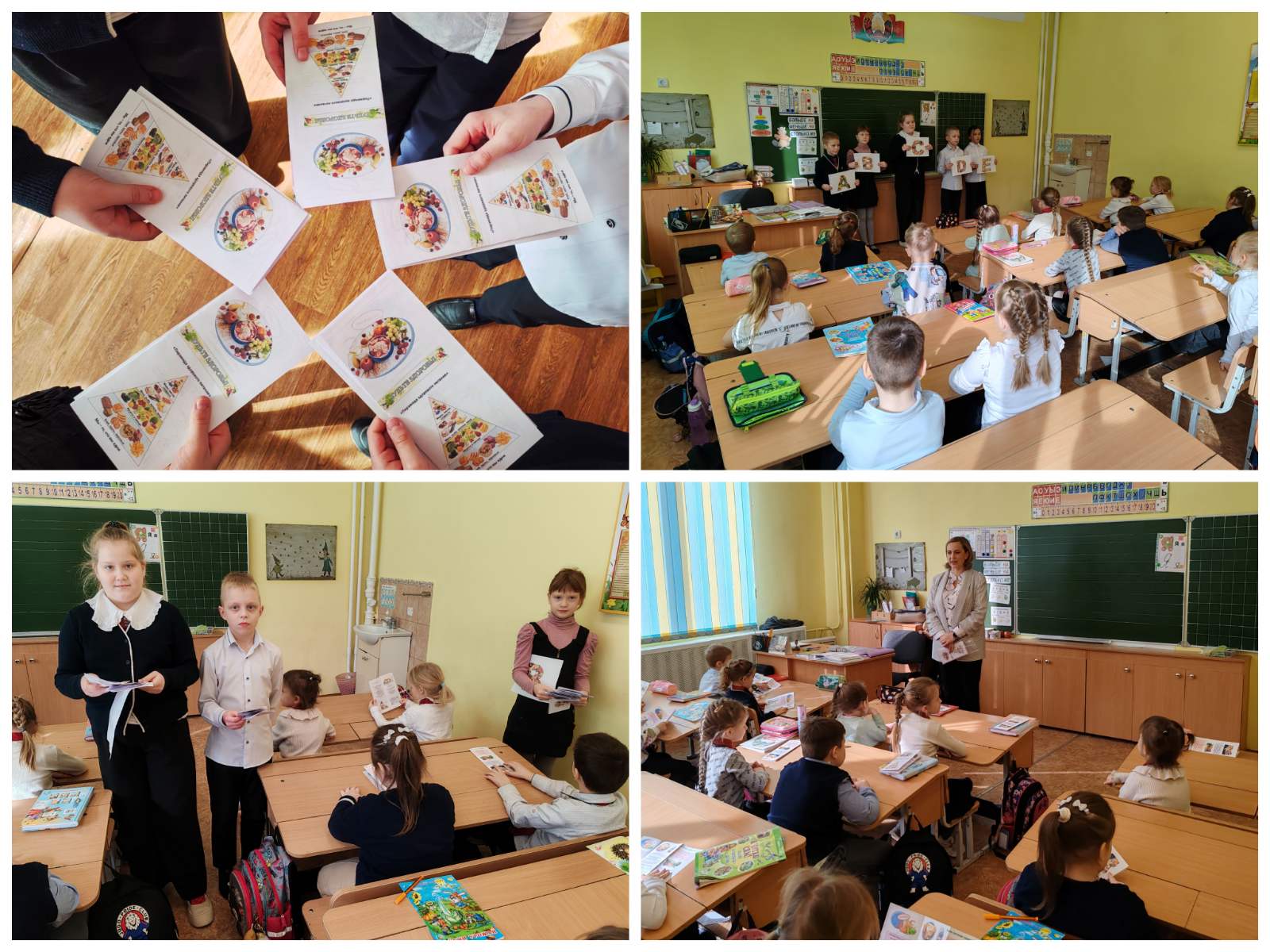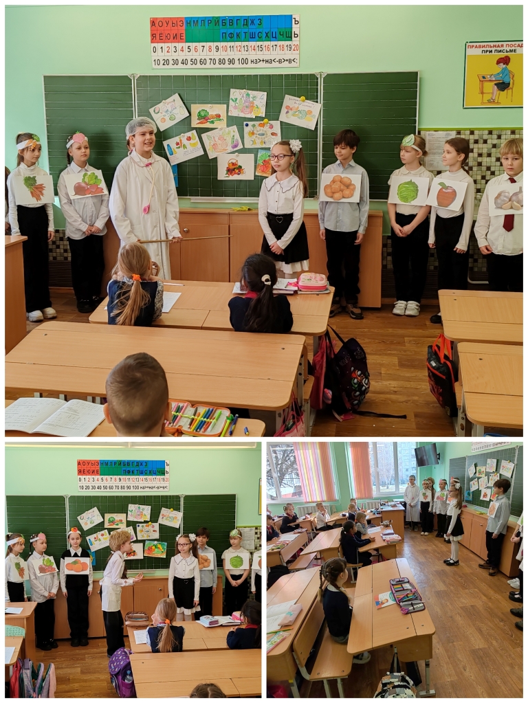 Учащиеся 3-х классов приняли участие в акции "О правильном питании для себя и младших друзей". В рамках этой акции ребята подготовили выступления для учащихся 1-2 классов. Это были сказки, сценки, стихи. Ребята раздавали младшим ученикам брошюры и буклеты с полезной и интересной информацией.
